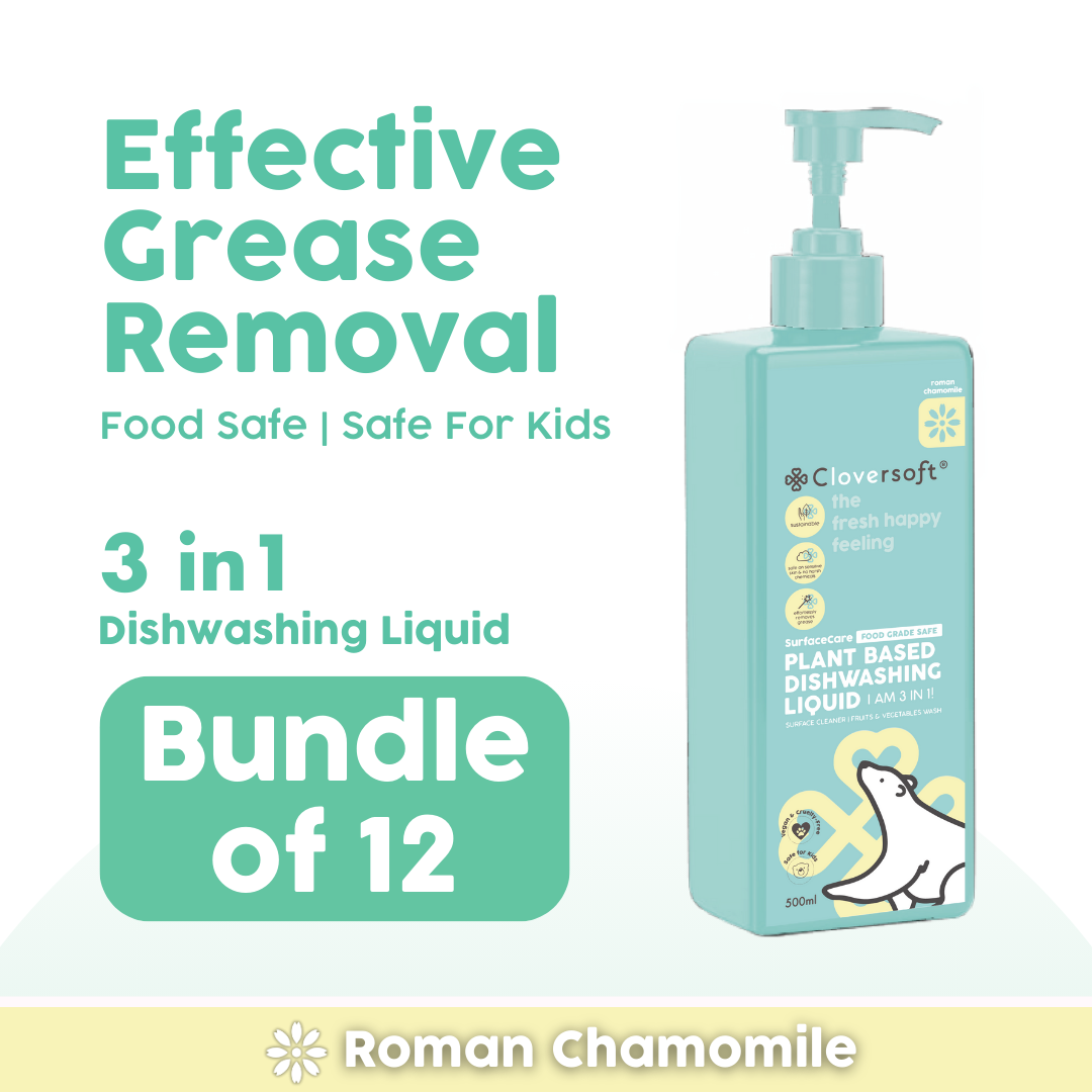 Introducing our 3 in 1 Multipurpose Dishwashing Liquid Bottle in the scent Roman Chamomile, with the perfect scent to lift your spirits when you’re cleaning the dishes and your kitchen area!