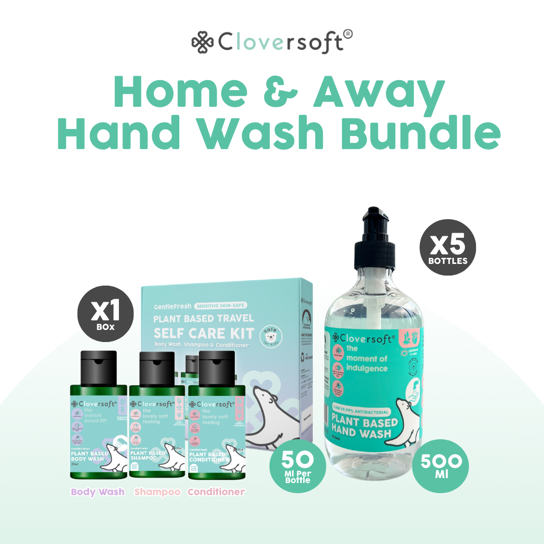 Cloversoft Self-Care Travel Set includes body wash, conditioner, shampoo (50ml each):